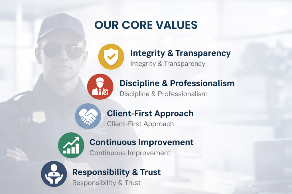 Professional security solutions designed to protect employees, assets, and operations with controlled access and disciplined monitoring.